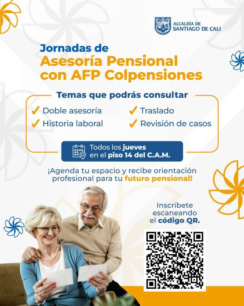 La Alcaldía de Santiago de Cali, en el marco del convenio con Colpensiones, abre un espacio pensado para acompañarte en la toma de decisiones sobre tu futuro pensional.